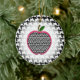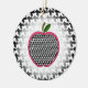 A Christmas ornament for teachers featuring a background of houndstooth. Matching apple at centre outined in pink.