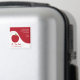 A contact magnet for teachers featuring a red and white colour scheme. Illustration of a red apple over bottom white section with swirl background design. Personalize with your name and title in red under apple. Personalize the red text on top half with your contact information.