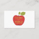 Classy stylish custom English teacher business card featuring a red apple with inspirational quote gold typography script.