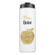 Teacher Faux Sequin Gold Apple Personalized Pretty Hot Beverage Tumbler. Pretty gold apple silhouette sparkly glitter faux sequin design. Personalized with your favourite teachers name. Fun, stylish and modern end of the year teacher gift. www.SamAnnDesigns.com