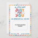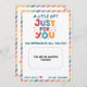Bright and cheerful teacher appreciation card featuring the phrase “Just For You” in playful rainbow colours, surrounded by cute stars and framed with a pastel striped border. Perfect for adding a gift card and showing gratitude to your favourite teacher. This fun design is ideal for Teacher Appreciation Week, end-of-year thank yous, or any special moment when you want to say “You are amazing!” Kids and parents will love gifting this happy little card filled with heart.