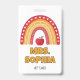 Featuring a cheerful rainbow and apple design, you can add your name and job title for a custom look.