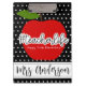 What a cute and functional apple for the teacher! This clipboard features a black and white polka dot background with a bright red apple in the middle, with the trendy hashtag #teacherlife displayed front and centre. Personalize it by adding your name or your favourite teacher's name and add the school name too (optional). Makes a great first-day or last-day-of-school gift from your student.