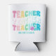 Teacher Modern Rainbow Colours Personalized Name Can Coolers features the text "Teacher" in modern rainbow colour repeat script typography with your custom personalized name below. Perfect for your favourite teacher for teacher appreciation, birthday, Christmas, holidays and more. Designed by Evco Studio www.zazzle.com/store/evcostudio