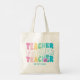 Teacher Modern Rainbow Colours Personalized Name Tote Bag features the text "Teacher" in modern rainbow colour repeat script typography with your custom personalized name below. Perfect for your favourite teacher for teacher appreciation, birthday, Christmas, holidays and more. Designed by Evco Studio www.zazzle.com/store/evcostudio