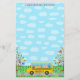 Write your classroom notes in style with this cute, personalized school bus design for teachers. This design is perfect for an elementary or preschool class. It shows a bunch of cuddly animals riding the school bus. The bear is driving, the fox is writing in its notebook, the owl is staring out the window, the pig is being a well-behaved student, and the bunny rabbit is waving a flag in the back seat. Around the bus, it's a happy day with flowers, clouds, trees, and birds. There is plenty of room to write on the light cloudy sky. Use the easy template to add your text. "Customize" to make more detailed changes. Go back to school in style with this pretty, custom design.
