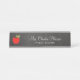 Teacher Name Red Apple White Script on Blackboard Desk Name Plate