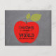 Big red apple with thoughtful typography quote inside on chalkboard background making a personalized teacher thanks giving expression gift. Fill in your text and signature on the back of the postcard!