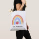 This teacher tote bag features a cute pastel coloured rainbow accented with a pencil and a red apple. Personalize with the teacher's name.
