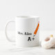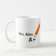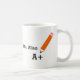 Personalized mugs for teachers with a pencil design and A+ grade mark. You can customize text