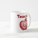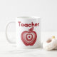 A modern teacher design featuring a layered red apple with concentric ring detailing and a bold Teacher title in red typography. The centred composition creates a calm, balanced look that stands out on a white mug. A thoughtful gift for educators, new graduates, or anyone proud of the teaching profession