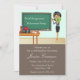 Teacher Retirement Invitation featuring an African American teacher with Black hair in a classroom in front of a chalkboard.