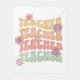 Colourful grunge retro style "Teacher, Teacher, Teacher, Teacher" text design with blooming retro flowers decoration