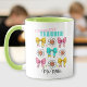 Colourful and cute mug featuring bow pencils and happy daisies in retro coquette style, not just for first grade teachers. Easily personalize the text, type a personal message or leave it blank - Kate Eden Art