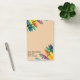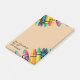 Teacher student sticky notes with light brown tan background and crayons. Great for elementary school and middle school classrooms. Customize the teacher and class information.