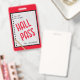 Teacher student bathroom hall pass with notebook paper, pencil and red background. Comes with lanyard attachment. Great for elementary school and middle school classrooms. Customize the teacher name, grade, and room number.