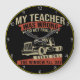 This humourous wall clock playfully refutes a common misconception about truck driving. Against a black background with a warm yellow rim, it features a semi-truck silhouette in white with red banner accents. The witty text proclaims: "MY TEACHER WAS WRONG I DO GET PAID TO STARE OUT THE WINDOW ALL DAY". It's a lighthearted gift for any truck driver who enjoys the scenic aspects of their long hauls. The design tool can also be used to add custom text if you want your name or company on this clock. You can customize the colour of the frame to any colour you desire by going into the design tool.