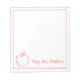 This cute notepad features a line drawing apple in red on a background of solid white. Personalize with your choice of name or special text in matching red. Makes a great gift for teachers!