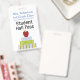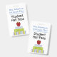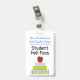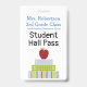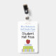 School teacher's student hall pass badge done in white with colourful graphics of stacked text books with an apple on top. Personalize the text fields to read what you want.