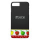 Teacher's iPhone 7 Plus case in black, with graphics of colourful apples, on a white stripe, at the bottom. White custom text reads iTEACH and is ready to read what ever you want. the text for yourself or as a gift. Great way to protect your iPhone and be stylish too. Makes a great gift idea, to add any text you want.
