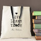 A modern tote bag for teachers. Live Learn Teach and personalize it with your name.