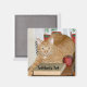 Orange tabby cat next to an apple and a book titled "Teachers Pet" tongue in cheek photo magnet