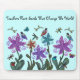 Graphic illustration of colourful flowers, leaves, birds, butterflies, dragonflies, and ladybugs in a beautiful garden. Great gift idea for your favourite teacher or customize your message for any occasion. Original artwork by Magins Creations.