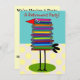 Unique Teachers Retirement Party Invitations, artist drawn whimsical bird designed from artist created 3D stack of books. Make it a special occasion! Customizable on back.