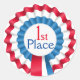 Kid's love stickers and what better way to award something special, in the class room, then giving out award stickers. This round sticker has graphics of a red, white, and blue rosette style ribbon, with red and blue text reading 1st Place. Personalize the text to read anything you want. Great for kids of all ages.