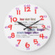 TEACHING CLOCK ANALOG 150802 Clock to help with learning how to tell time on an analogue clock. This one has hints written right beside the hands and right on the clock itself to help learners. Numbers are marked for hours and for minutes. If the clock was actually working the words would only be under the hands for a short period of time.