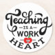 Teaching is a Work of Heart Appreciate To Teacher Round Paper Coaster