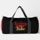 This black and red duffle bag celebrates the special bond between teachers and their students, featuring the heartwarming phrase "Teaching my Tribe" in a stylish, two-toned font with apple icons. It's an ideal gift for dedicated educators who cherish their classroom community. Edit colour of the bag caps and body in the Design tool to your favored colours.