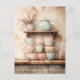 A charming rustic painting featuring an elegant tea set with vintage teacups and a teapot, evoking a cozy farmhouse aesthetic. The warm tones and delicate details create a timeless and inviting atmosphere, perfect for tea lovers and country-inspired decor.