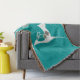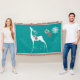 Teal All is Calm All is Bright holiday throw blanket, features a solid teal blue background, pale blue text that reads All is Calm All is Bright, and a silhouette white deer with ornaments hanging from his antlers! This pretty holiday throw is a great gift for yourself or someone you love and will become part of your Christmas traditions!
