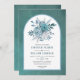 Teal and aqua blue flowers and arch wedding invitation