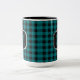 Teal and Black Plaid Monogram Two-Tone Coffee Mug