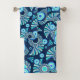 Teal and blue abstract tribal pattern Bath Towel Set features unique and eye-catching design in navy-blue, blue and teal. Seamless pattern in modern ethnic tribal style combines colourful abstract shapes, circles and triangles