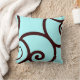 abstract swirl, teal light blue and brown chocolate pillow Design by Sandy Closs