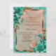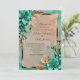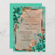 This wedding card features an elegant design with soft, pastel colours. The background has a gradient blend of turquoise and copper, creating a serene and delicate ambiance. Intricately crafted floral elements, primarily in shades of copper and light teal, adorn the corners and sides of the card, adding a touch of sophistication and romance. The flowers and leaves are designed with a three-dimensional effect, giving the card a textured and artistic look. This design is perfect for conveying a sense of elegance and beauty for a wedding invitation. Personalize the text regarding the names and details of the wedding. You can download the card to your mobile device or computer. I designed the card with ai technology.