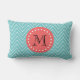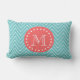 Teal and Coral Chevron with Custom Monogram Lumbar Pillow