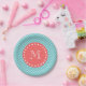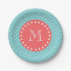 Teal and Coral Chevron with Custom Monogram Paper Plate