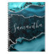 Teal and Faux Silver Glitter Marble Agate Notebook