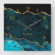 Teal and Gold Agate Personalized Square Wall Clock