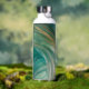 An elegant water bottle, thermal, with no ocean-killing plastic! Conservation benefits as well as a practical solution for keeping for keeping hot or cold sustenance nearby. The print design is a swirled melange of shades of turquoise and gold with a blown glass-like design. Personalize option on front.