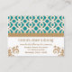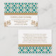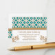 Elegant, stylish and beautiful french baroque Moroccan inspired wedding reception enclosure cards with a repeating teal blue green hue and gold geometric pattern design and gold hued floral flourishes. This upscale and luxe enclosure card is perfect for a Moroccan, Arabian Nights or Aladdin themed wedding. The front and back of these custom, reception cards can be personalized with your wedding reception details. Artwork and design © Chrissy H. Studios, LLC. All Rights Reserved.