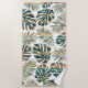 Teal and gold patterned tropical leaves beach towel