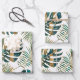 Teal and gold patterned tropical leaves wrapping paper sheet