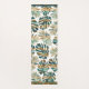 Teal and gold patterned tropical leaves brush paint strokes yoga mat. It showcases patterned tropical leaves with brush strokes in teal blue and gold and confetti. You can customize it and add your images or graphics.