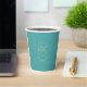 Create personalized wedding paper cups. Features a rose design in teal and gold along with the name of the wedding couple and the date of the wedding. Just change the text to fit your needs. Use the template to personalize.