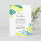 Teal and Lemon (Turquoise and yellow) watercolor tropical foil foliage drive through bridal or baby shower invitation.